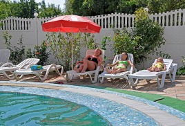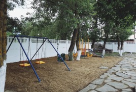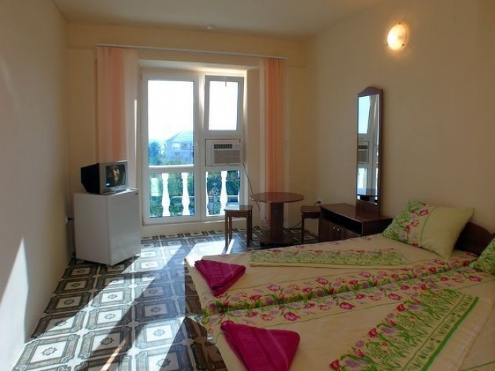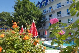 Пляж: 150 метров от базы отдыха, городской, песчано-галечный, оборудованный, с большим количеством развлечений: прокат катеров, водные развлечения, прокат пляжного и спортивного инвентаря, солнцезащитные навесы, лежаки, проход к морю через пешеходный мост.