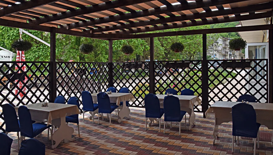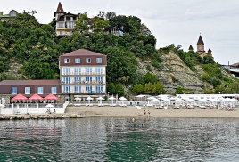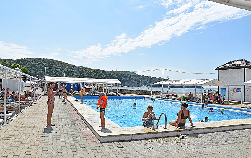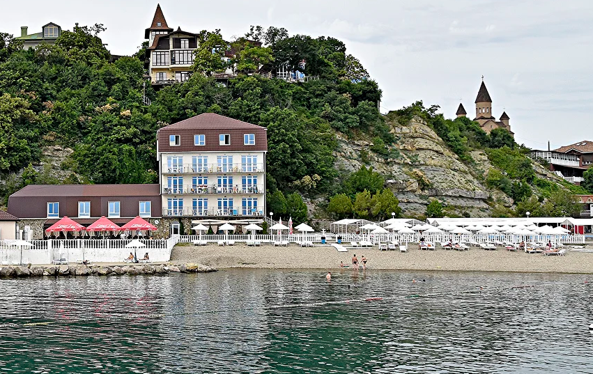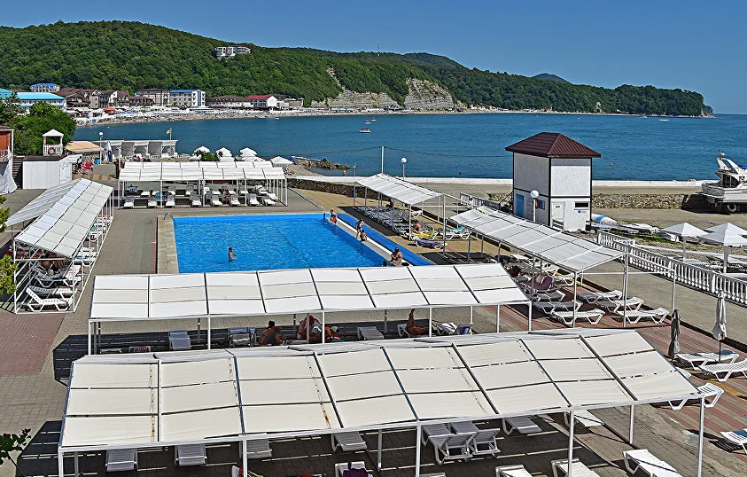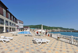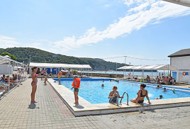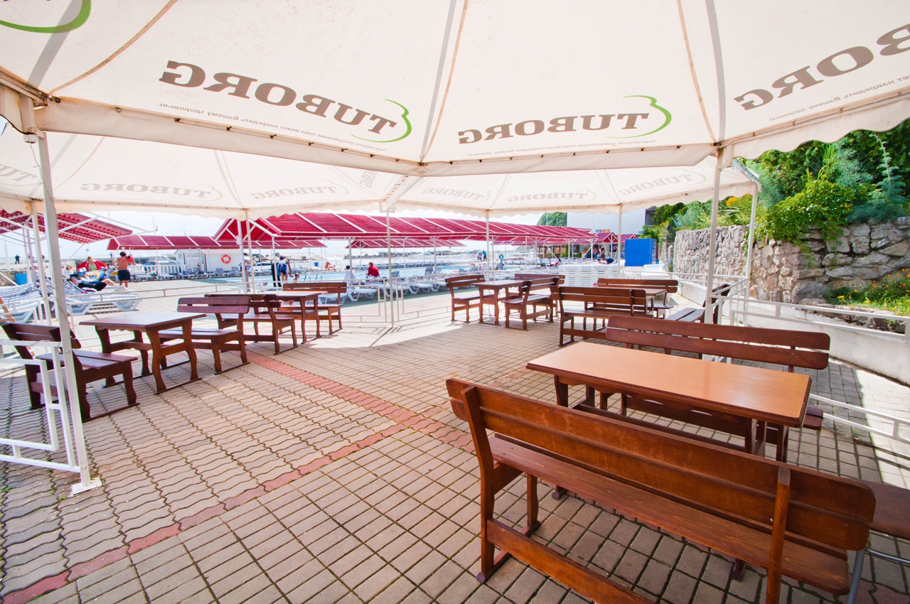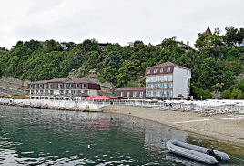 Пляж: галечный, расположен в 50 м от корпусов, оборудованный теневыми навесами и лежаками. Платные услуги – бар, душ, туалет, яхты, катера, гидроциклы, пляжный и спортивный инвентарь.