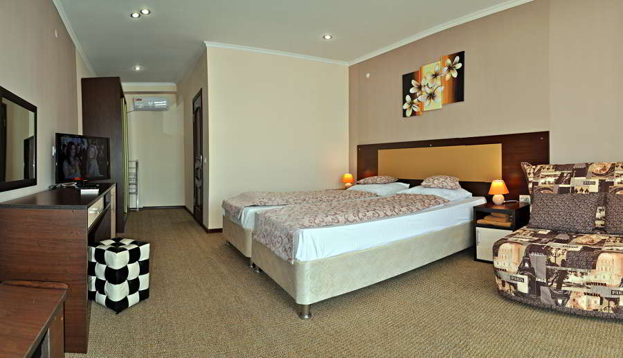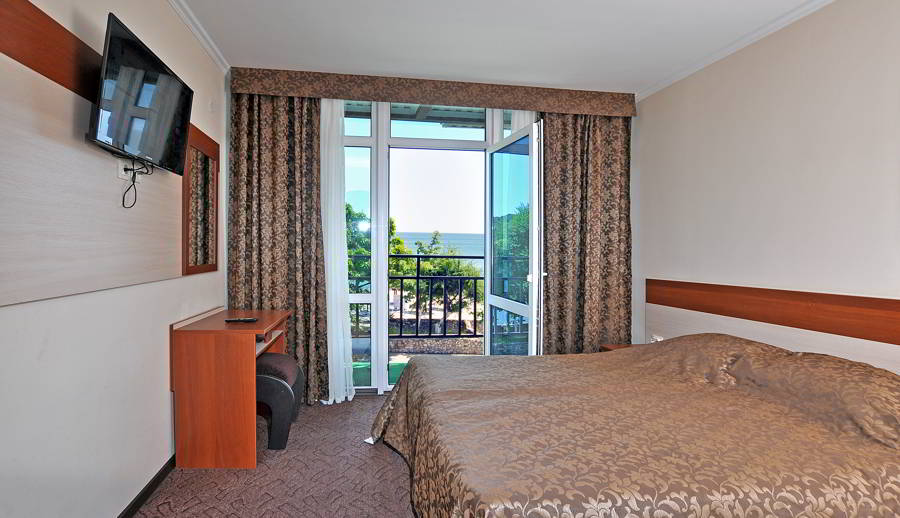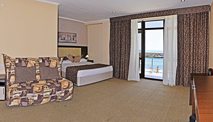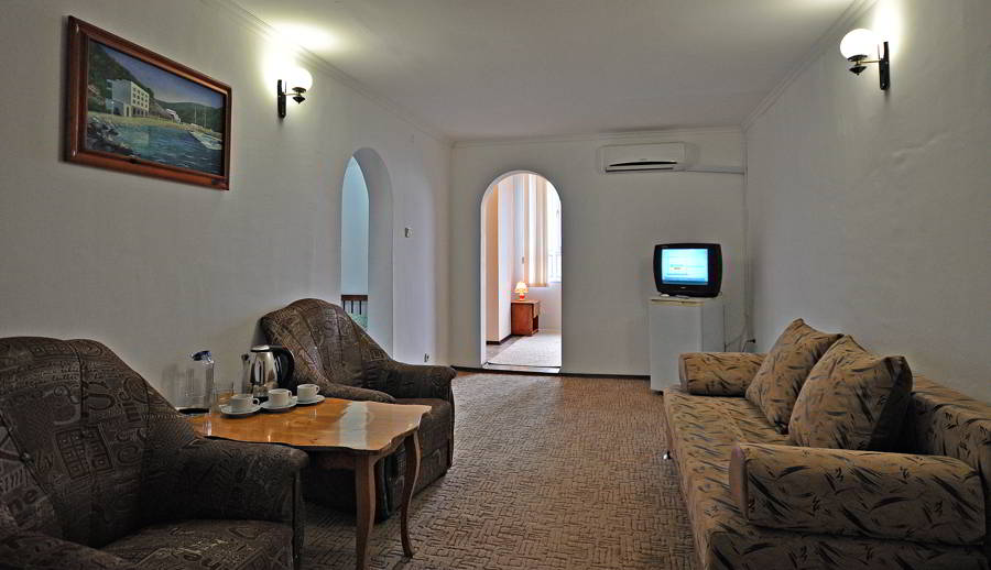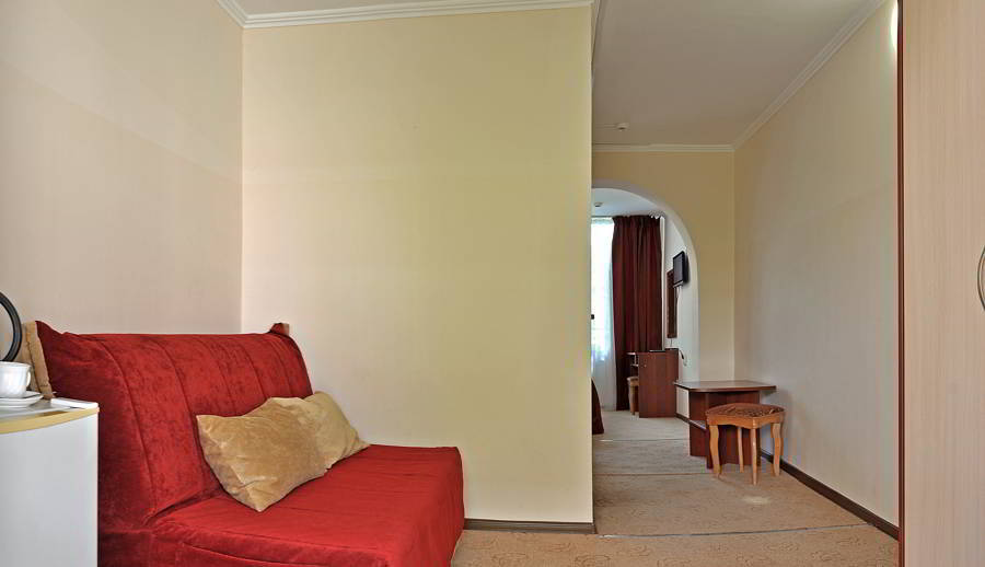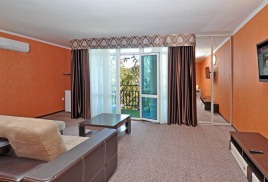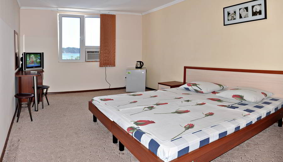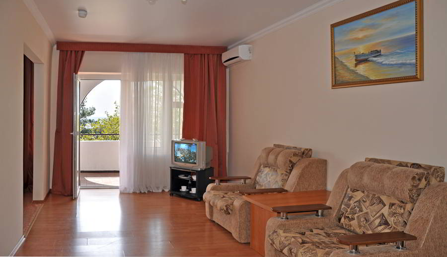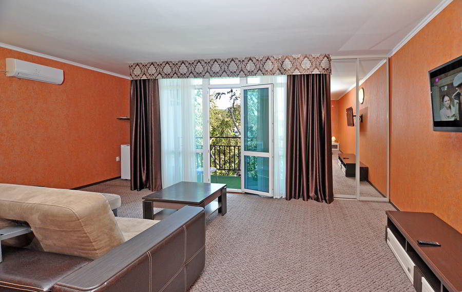 - 2-х местный номер Полулюкс с удобствами с видом на море (42м2) (макс.2+2). В номере: две кровати бокс-спринг, диван, душ, санузел, сплит-система, балкон, ТВ, Х,Wi-Fi. Дополнительное место: раскладной диван.