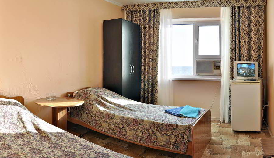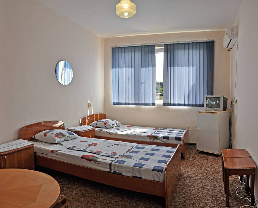 - 2-х местный 1–но комнатный номер с удобствами (20м2) (макс.2+1). В номере: две раздельные кровати, душ, санузел, ТВ, Х , кондиционер, Wi-Fi. Дополнительное место – евро раскладушка.