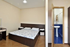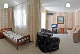 - 2-х местный 1-но комнатный номер с удобствами (20-26м2) (макс.2+2). В номере: душ, санузел, ТВ, Х, сплит-система, две раздельные или одна двуспальная кровать,Wi-Fi. Дополнительное место – евро раскладушка или диван.