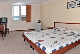 - 2 - местный 1-но комнатный номер с удобствами (28м2) (макс.2+1). В номере: душ, санузел, сплит-система, ТВ, Х, с видом на море,Wi-Fi. В номерах на 2-ом и 3-м этаже - балкон, в номерах на 1-ом этаже – выход к бассейну, оборудованный стульями, сушилкой для купальных принадлежностей. Доп. место: мини-диван.